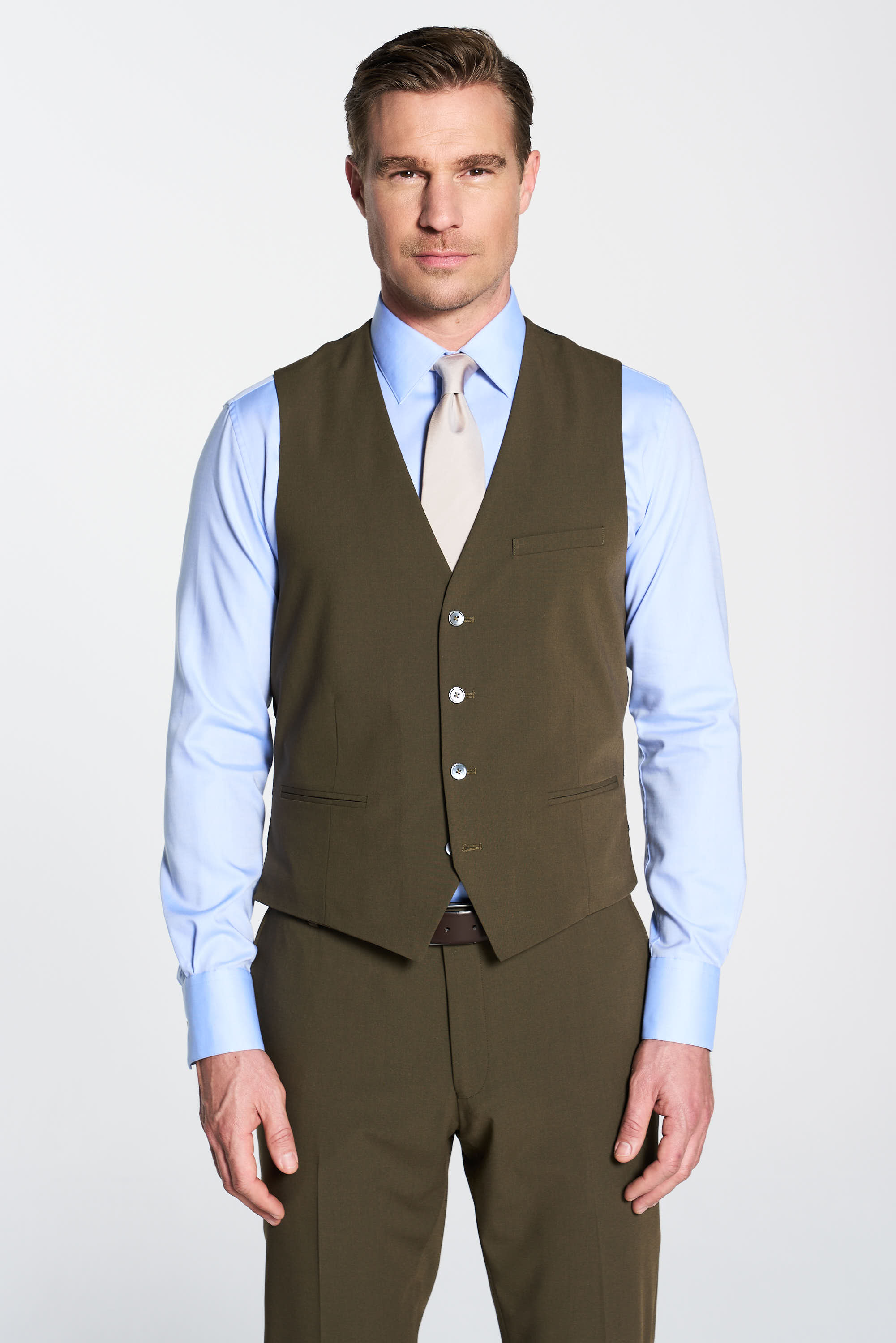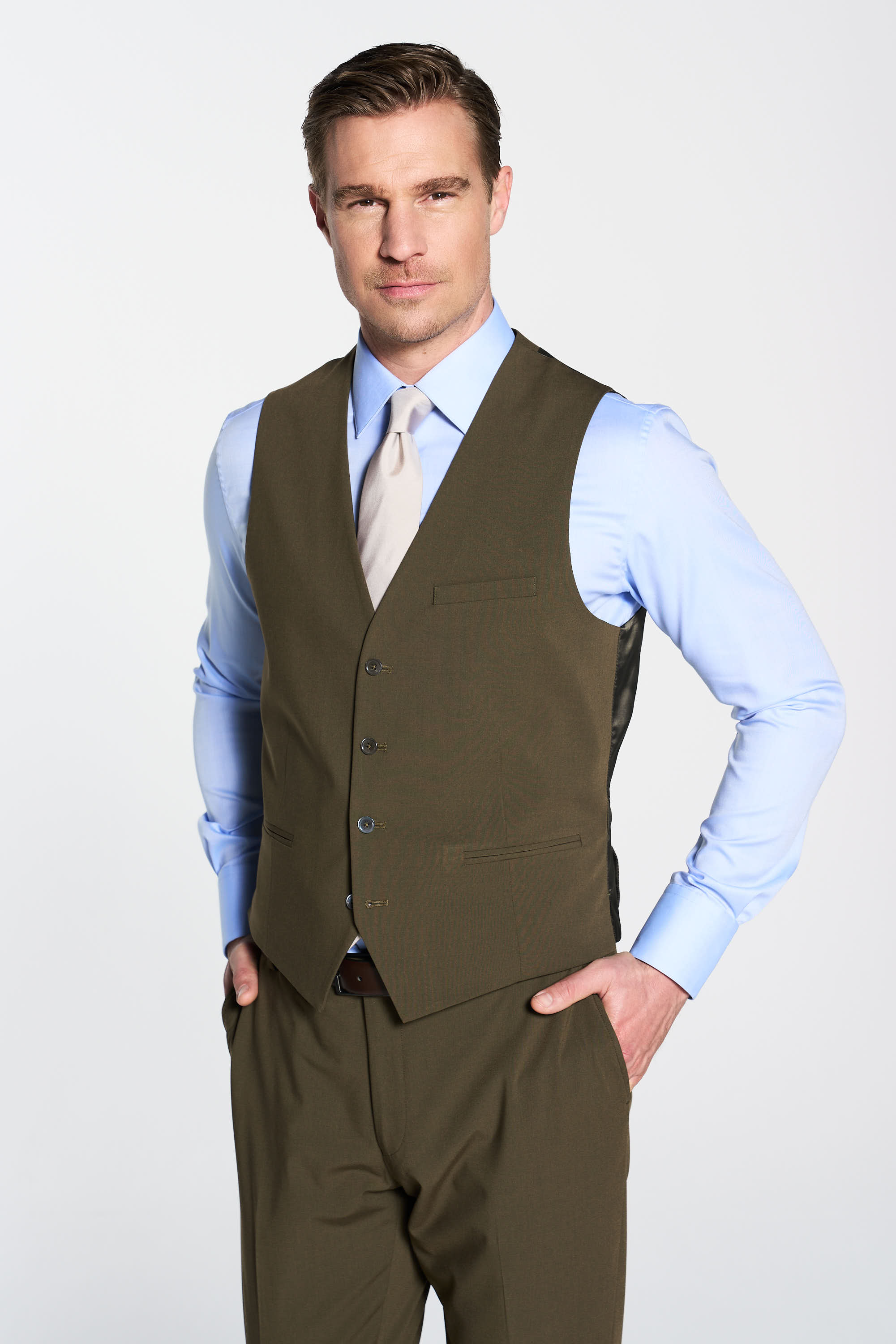 Modische, dunkel olivgrüne Weste in zeitgemäßer Slim-Fit-Passform. Die innovative, hochwertige Stretch-Qualität sorgt für ein besonders leichtes und angenehmes Tragegefühl. Lässig auch als Einzelstück tragbar und ideal kombinierbar mit dem Sakko Larus sowie den Hosen Johnston – auch in unterschiedlichen Größen.