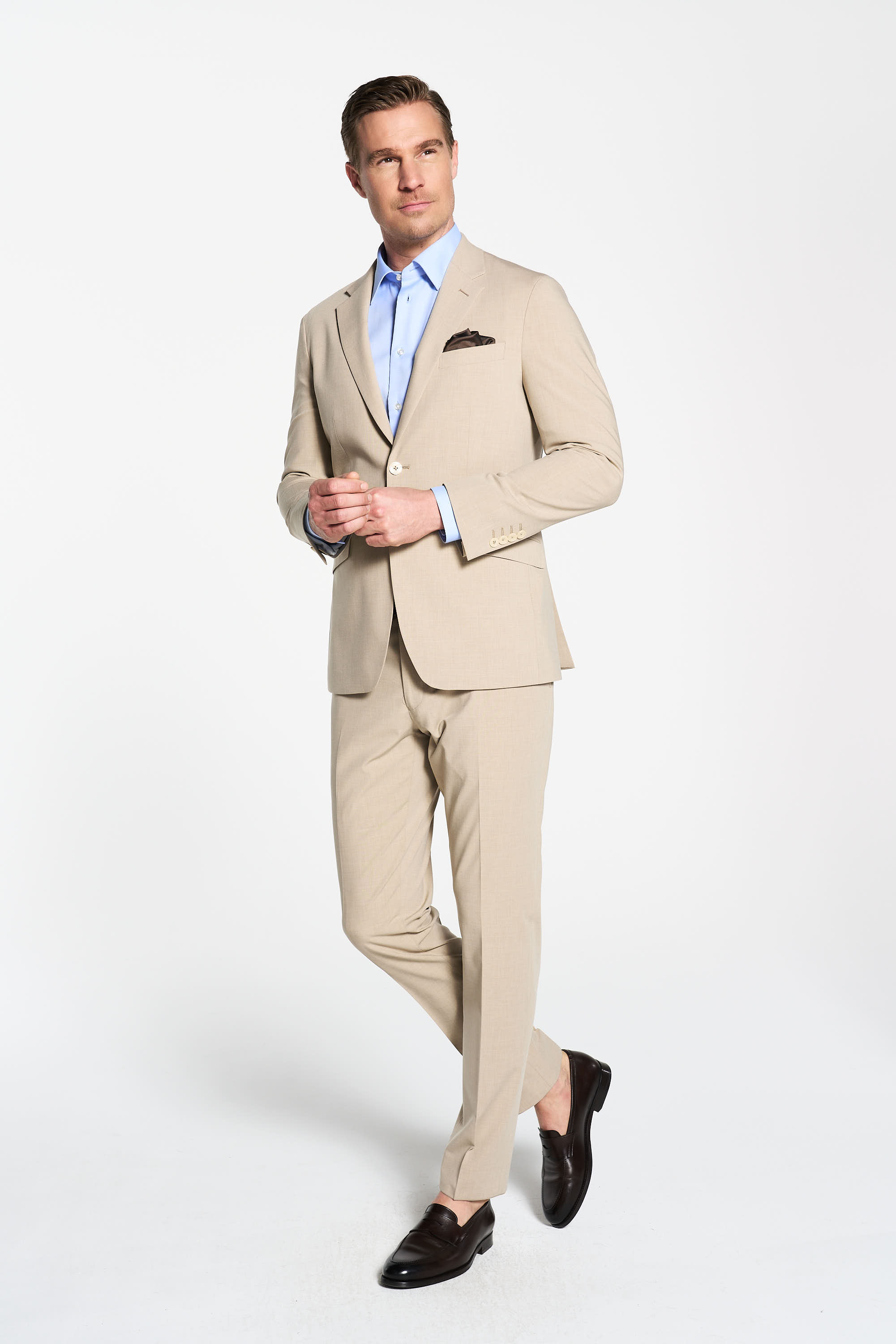Modisches, beiges Sommer-Sakko in einer zeitgemäßen Slim-fit Passform. Die innovative Stretch-Qualität sorgt für einen superbequemen, leichten Tragekomfort. Auch als Mix Anzug, in unterschiedlichen Größen zu kombinieren mit den Hosen Johnston und/oder Jagger 1 24 1 und als dreiteiliger Anzug mit der Weste Tiger 1 24 1.