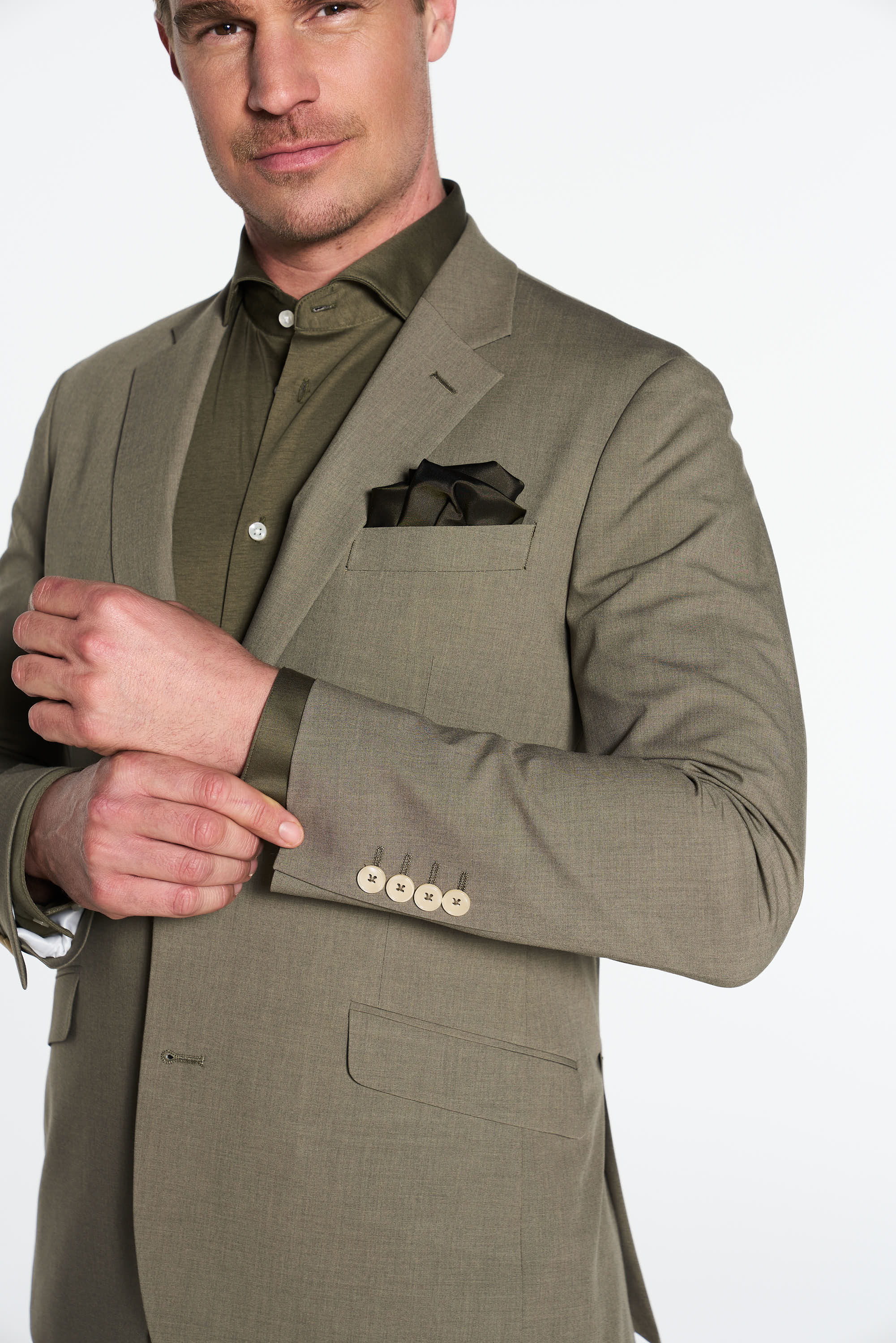 Modisches, olivgrünes Sommer-Sakko in zeitgemäßer Slim-Fit-Passform. Die innovative, hochwertige Stretch-Qualität sorgt für einen besonders leichten und komfortablen Tragekomfort. Auch als Mix-&-Match-Anzug tragbar: kombinierbar in unterscheidlichen Größen mit der Hose Johnston und mit der Weste Tiger zum stilvollen Dreiteiler.