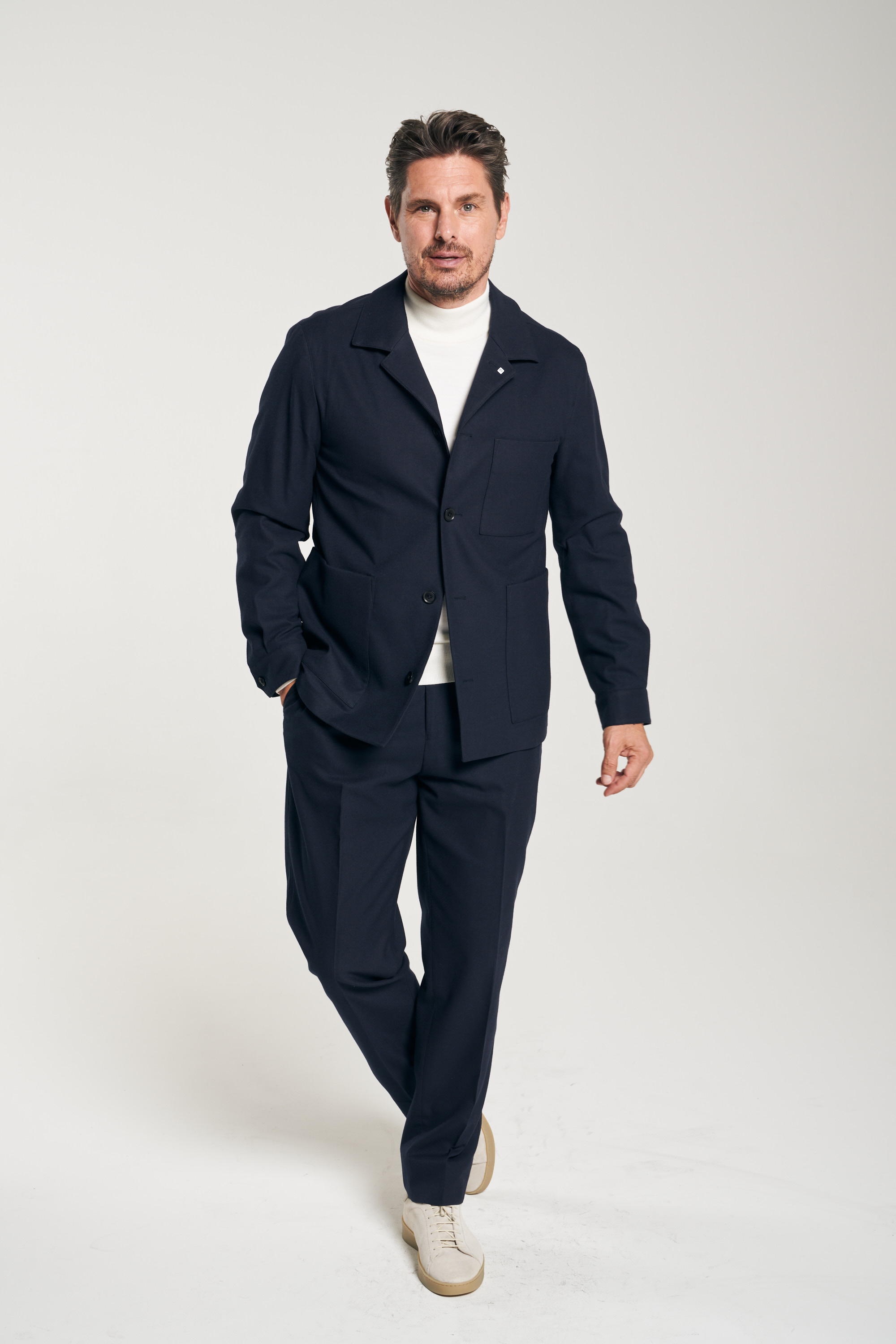 Legeres Casual-Sakko in Dunkelblau. Die neue, hochgeknöpfte, etwas weitere Passform Marus und die flauschig-softe Stretch-Qualität sorgen für einen super-bequemen Tragekomfort. Auch als Mix-Anzug mit der Hose Messi 2 24 1 erhältlich. Mix - d.h. die Größen sind frei wählbar. Weitere Farben Anthrazit, Schwarz und Oliv.