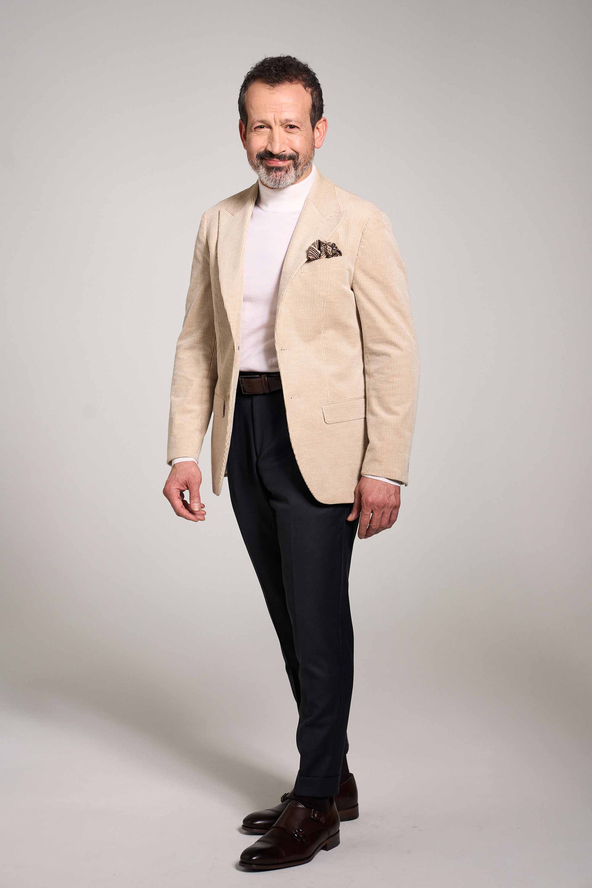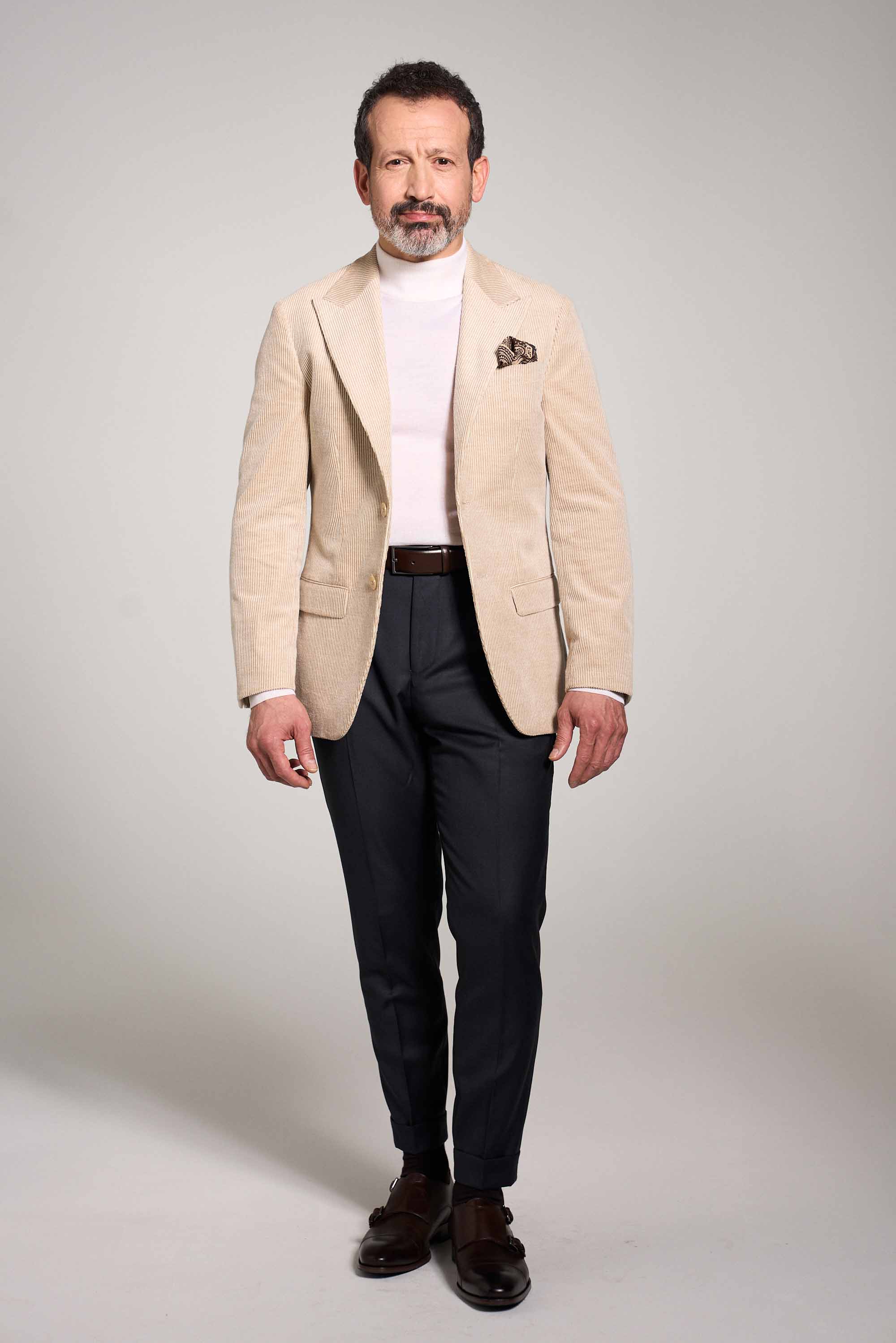 Beiges, legeres Cord Sakko. Mit einem breiten, steigenden Revers und körpernahen, soften Fitting . Das weiche Cordtuch aus Baumwolle-Elasthan sorgt für einen weichen und bequemen Tragekomfort. Als Einzelsakko oder zu einem Mix Anzug in unterschiedlichen Größen kombinierbar mit der Hose Carter 2 25 1.