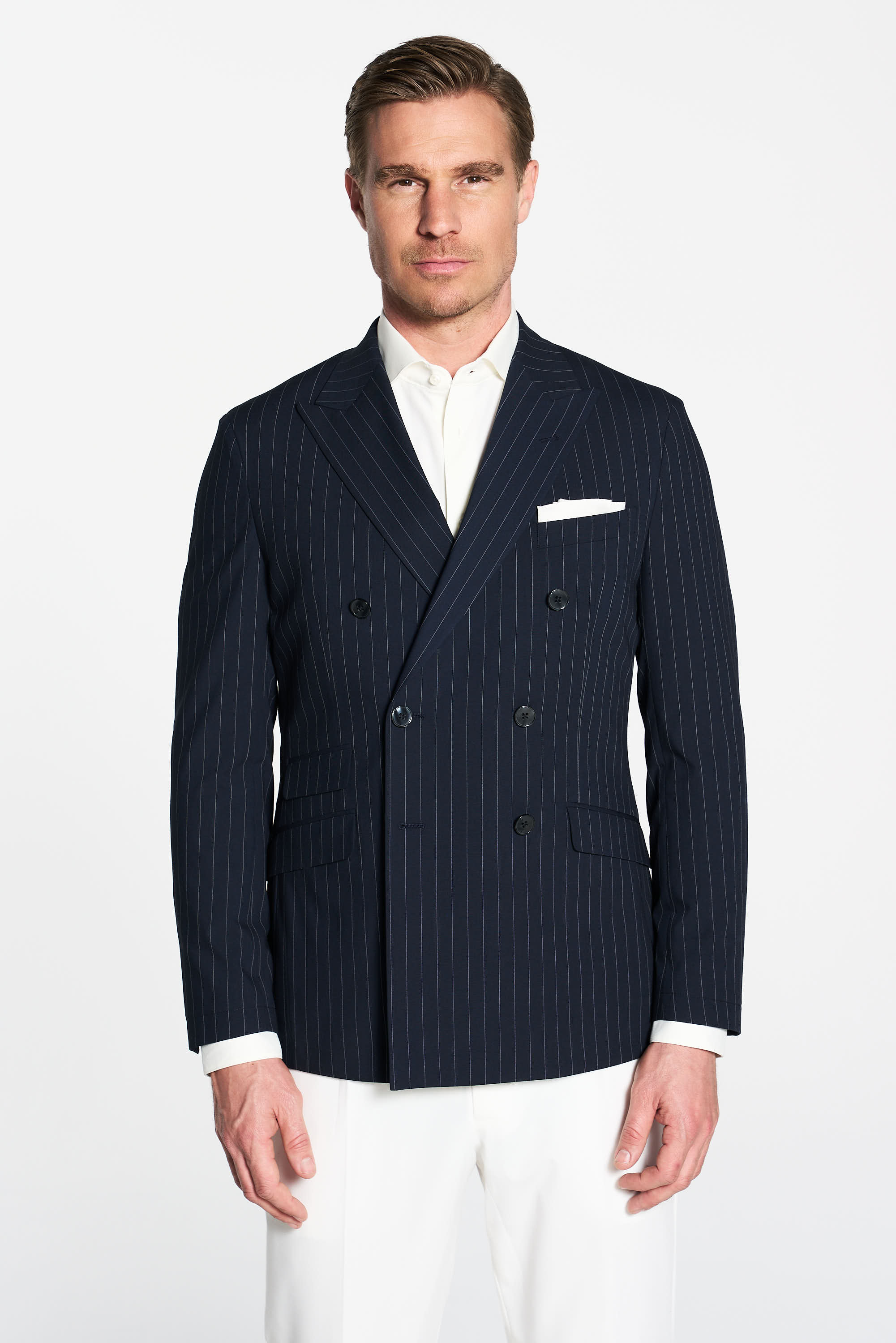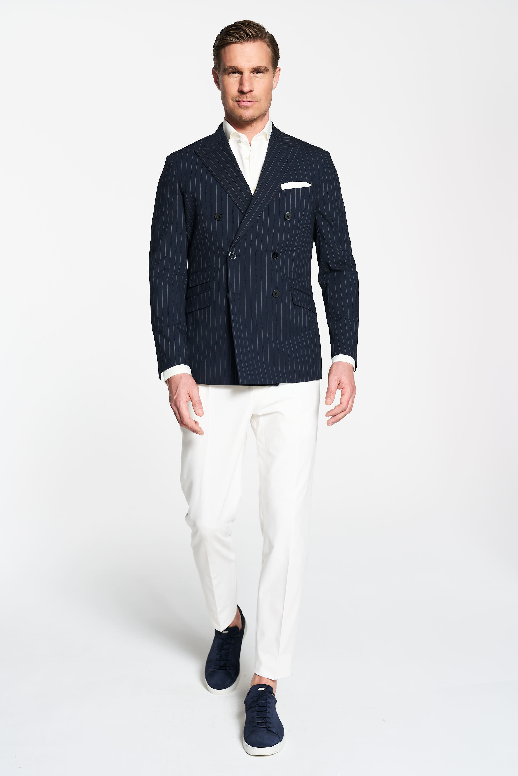 - Zweireihige Knopffront.
